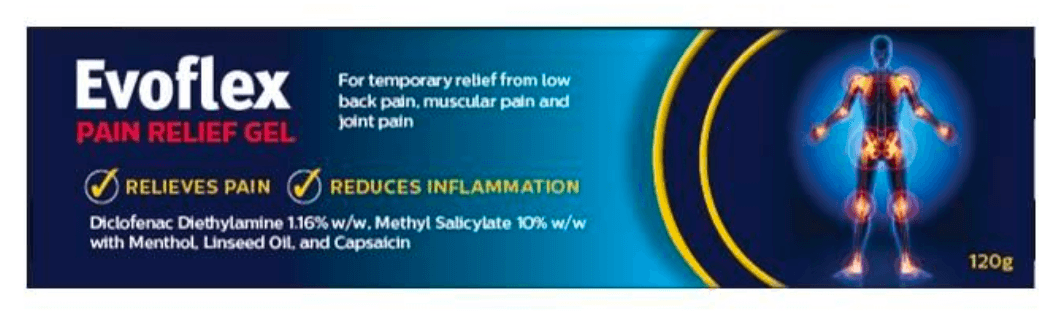 Evoflex gel contains Diclofenac - a non-steroidal, anti-inflammatory drug (NSAID) and Methyl Salicylate for a rapid  cooling and soothing effect.
